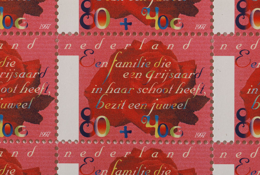 Theme of these stamps was ’The image of the elderly’. How do younger people experience elder people and viceversa, and how do elderly see themselves. Leitmotiv is the aging of a flower in three different stages of growth. This forms a story, together with sayings on old age.